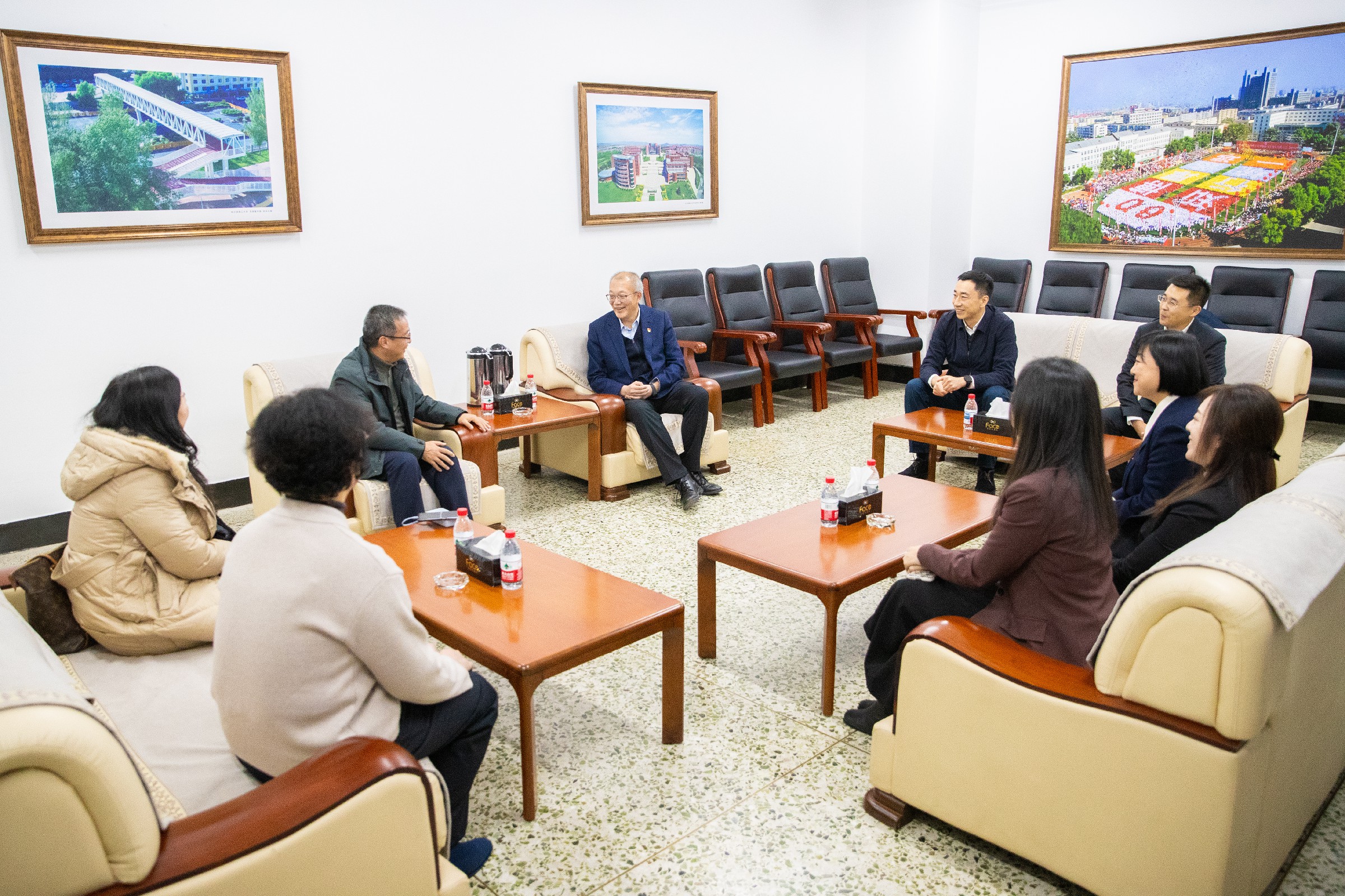 学校党委宣传部、党委学生工作部大学生就业服务中心、团委、马克思主义学院全体成员,各学院党委副书记,全体辅导员等参加会议,威海校区相关人员线上参会。会前,赵水杉等陪同中教华影一行调研参观了学校校史馆和王大珩纪念馆。