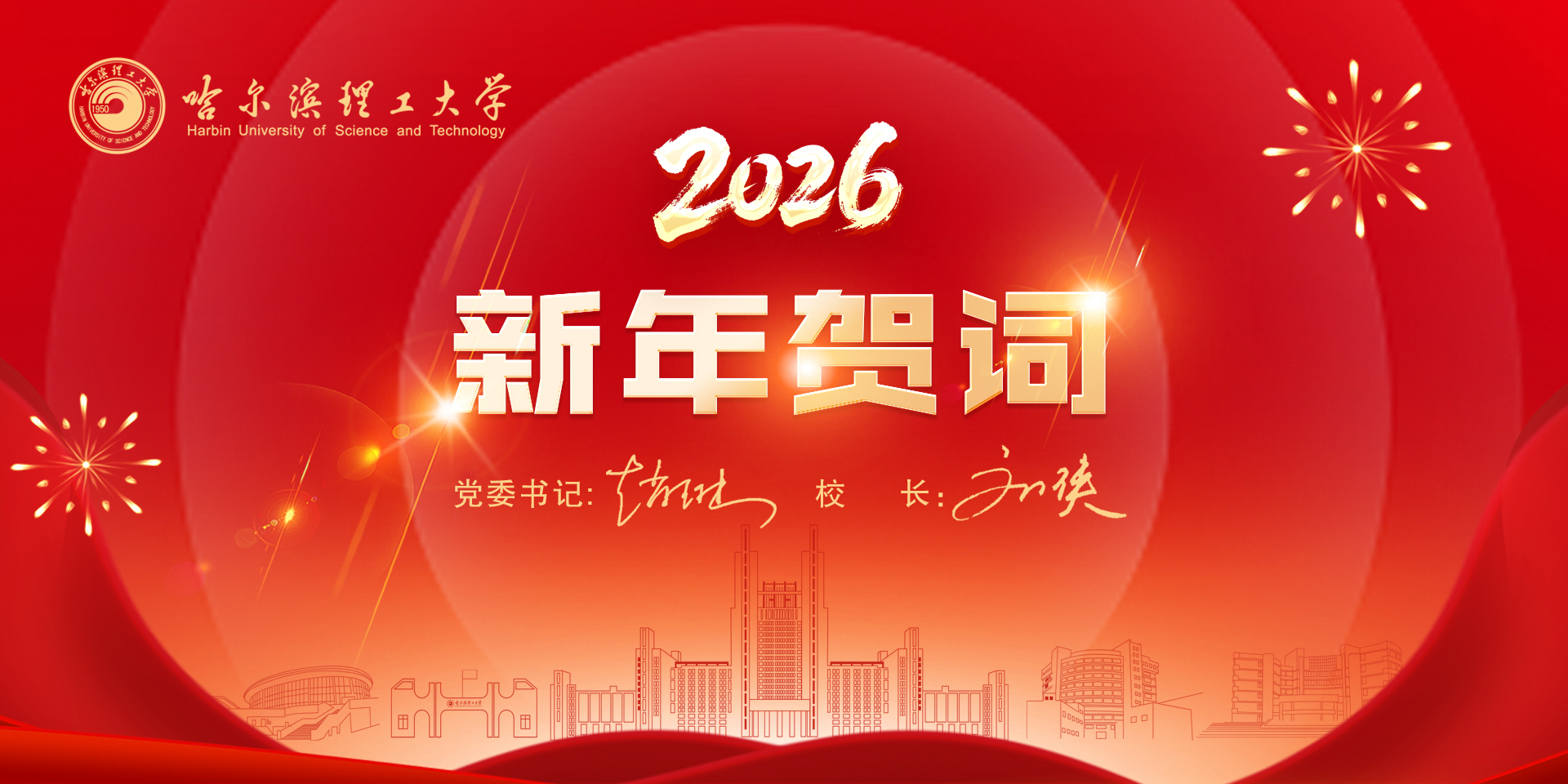 岁序更替,华章日新;新元肇启,征程万里!满载2025年的丰硕成果,奔赴2026年的崭新征程。值此辞旧迎新之际,我们向全校师生员工和离退休老同志,向广大校友和长期关心支持学校事业发展的各级领导、各界朋友,致以最衷心的感谢和最崇高的敬意。