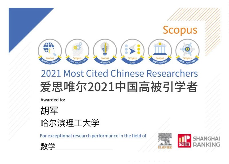 胡军教授再次入选2021“中国高被引学者”榜单,胡军教授连续两年蝉联榜单,展现了学校在数学及相关交叉学科领域的重要贡献和广泛学术影响力。