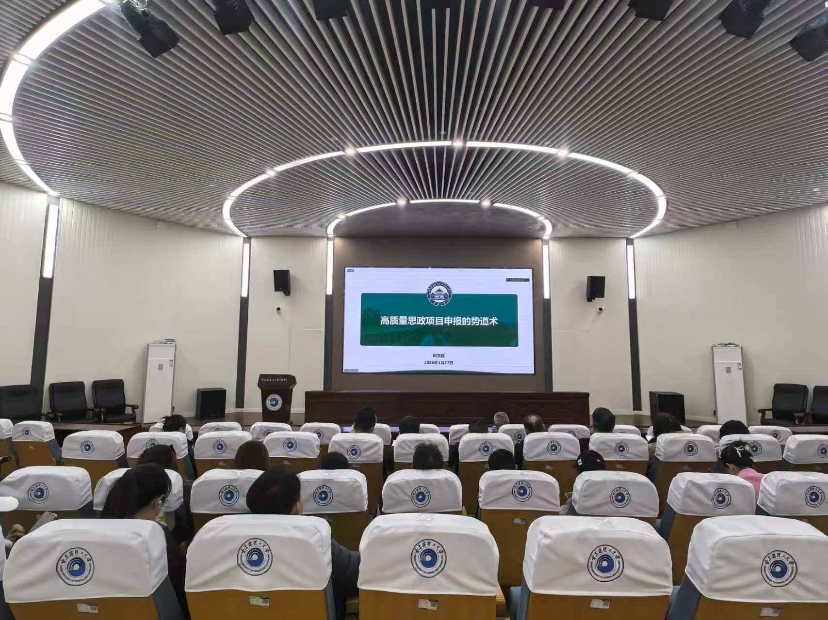 司文超以《高质量思政项目申报的势道术》为题,从四个维度展开系统讲解。在项目申报“之道”的层面,阐释了思政项目申报的重要意义,指出申报研究是提高政治站位、推进思政工作体系“螺旋上升”的关键,也是思政工作者追求卓越的路径;在项目申报“之维”的层面,明确申报需关注基本原理、趋势规律、政策设计等核心要素;在项目申报“之谋”的层面,从品牌项目示范推广、骨干队伍培育提升、平台基地辐射引领等三类讲解申报策略,为申报开局指明了路径;在项目申报“之术”的层面,提出读经典、塑品牌、练“四力”等进阶方法,强调思政工作者要深耕领域、立己达人,为着科学化、打造硬支撑。此次培训内容详实、指导性强,让学校思政工作者明晰了思政项目申报的思路与方法,为我校后续思政项目培育申报和思政工作提质增效奠定了坚实基础。