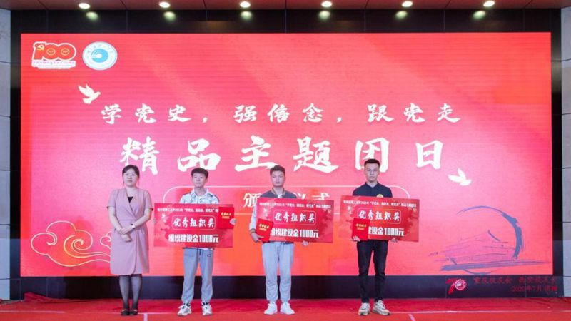 本次“学党史、强信念、跟党走”精品主题团日评选活动共分为学院初评和校级复评两个阶段,初评中12个学院团委依托智慧团建系统共评选出103项院级优秀主题团日活动,通过各学院团委复审,共推选报送30项参与校级精品主题团日活动评选,经校团委,学工部复评,最终评选出精品主题团日一等奖二名,二等奖四名,三等奖六名,优秀奖十名,优秀组织奖三名。展演上由机械动力工程学院机械20-2班团支部、理学院应物19-1班团支部、统计20-2班团支部、自动化学院机器人工程19-2班团支部为全校带来示范性主题团日活动的精彩展示。活动初始,机械动力工程学院机械20-2班团支部带来《“建党百年,不忘初心”朗诵》团活展示中,支部成员们以铿锵有力的气势,充沛饱满的感情,自信大方的形象表达了对祖国母亲、对中国共产党的感激和热爱之情,赢得了老师和同学们的阵阵掌声。随后,理学院应物19-1班团支部在《学习东北抗联精神演讲》团活展示中通过支部成员分段演讲的形式带领现场观众再次感悟东北抗联精神,回顾了抗联英雄杨靖宇、赵一曼浴血奋战、救亡图存的英雄伟绩,演讲者庄严低颂声引起了在场同学们对英烈祭奠缅怀的共鸣。理学院统计20-2班团支部以电影《建党伟业》中“中共一大会议”经典片段进行情境性展演,通过带领同学们“重拾红色记忆”,点燃了在场同学们的爱国热情,也使同学们体会到了中国共产党百年奋斗经历坎坷磨难却依然不忘初心。随后自动化学院机器人工程19-2班团支部在舞台现场还原再现了班级团支部新团员入团仪式,庄严隆重的入团宣誓仪式中,嘹亮的宣誓呐喊声彰显了该团支部成员特有的朝气和积极向上的品质。最后,与会领导、老师们与展演班级成员合影留念。