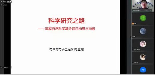 为做好2022年度国家自然科学基金项目申报工作,提升我校国家自然科学基金项目申报水平和申报质量,学校特邀请华南师范大学兰亚乾教授、电气与电子工程学院王暄教授于12月23日上午作线上专题报告。讲座由科技处处长康守强主持,近300名教师参加。