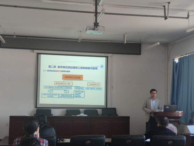 随后,付立军副处长指出,我校先后印发了《哈尔滨理工大学校内岗位绩效工资改革实施办法》、《哈尔滨理工大学校内岗位绩效工资分配的指导意见(试行)》两个文件最大限度地发挥二级单位在岗位绩效工资分配中的主体作用,激发教师工作积极性,此项改革不仅涉及到学校的发展,也切实涉及到教师的个体利益。随后,他从校内岗位绩效工资分配总则、教学单位岗位绩效工资的核拨与使用、校内岗位绩效工资管理、其他有关说明和附则等几个方面对校内岗位绩效工资分配政策解和《指导意见》进行了深入解读。