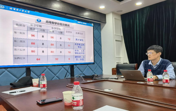 三位专家就大学数学教学改革和教学大纲的修订做经验交流报告。哈尔滨工程大学于涛教授做题为“数学教学适应学生成长的需要”的报告,对大学数学课程改革、教学及实践做了深入剖析和交流,并对哈尔滨工程大学“未来技术学院”精英人才培养模式下的大学数学课程设置做具体介绍。哈尔滨工业大学尹逊波教授做题为“高等数学课程及一流课程建设”的报告,对高等数学一流课程建设以及课程的分层次教学做了深度解读,并祝贺我校赵辉教授作为负责人的“高等数学”教研室获评省级虚拟教研室。哈尔滨工程大学王晓莺教授做题为“新版人才培养方案设置及课程建设情况汇报”的报告,介绍了哈尔滨工程大学19版的人才培养方案,并介绍了哈尔滨工程大学大学数学课程教学改革的具体措施。