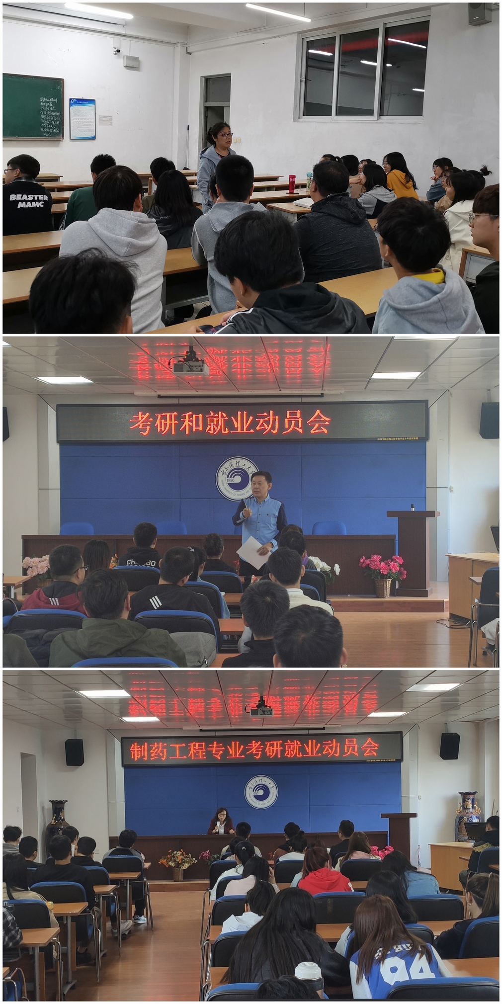 为深入贯彻落实学校全员就业指导方针,更好地帮助同学对考研与就业形势有更直观的了解,进一步提高大四学生的考研和就业率,化工学院召开了考研与就业系列动员会。院领导班子成员、各系主任、支部书记、毕业班辅导员先后走进大四各个班级,连续开展四场考研与就业动员会。