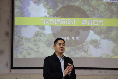 授牌仪式后,陈成总监对绿色建筑行业发展、绿色建筑教育现状进行探讨与展望,以“绿色建筑模拟技术教育应用”为主题作专题讲座。技术经理陈颖以“基于BIM的绿色建筑解决方案”为主题,对绿色建筑模拟技术的应用进行了详细介绍。建筑工程学院师生聆听讲座并与企业之间开展相关交流。