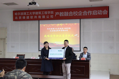 2019年10月15日上午9时,由哈尔滨理工大学建筑工程学院与北京绿建软件有限公司(绿建斯维尔)共同举办的《产学融合校企合作启动会暨绿色建筑模拟技术交流会》在哈尔滨理工大学建筑工程学院231会议室顺利召开。会上双方签订战略合作协议,合作建设绿色建筑(BIM)实训基地。建筑工程学院党委书记戴湘竹、副院长孙伟斌,北京绿建软件有限公司运营总监陈成、技术经理陈颖、高校经理郝冬雪出席启动会。会议由孙伟斌副院长主持。