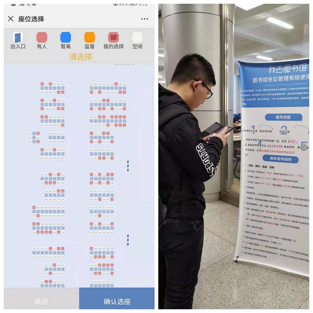 3、针对征求到“南区图书馆学生私自占用公共座位,影响其他同学正常使用图书馆”的问题。图书馆与相关学院联系,征得学院协助,清理私占座位,整顿自习区环境。为杜绝占座行为,图书馆现推出网络预约方式,学生可通过图书馆座位管理系统APP进行座位预约,保障了学生平等享有公共资源的权利。