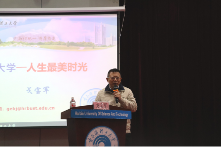 戈宝军教授讲述了自己曾经认知的大学之美好——美好是曾经满心的期待、是美丽的校园、是优越的学习条件、是丰富的课外活动;那当代大学生心中的大学之“美好”又是怎样的?是没了父母的管束、一起聚会一起嗨,寝室开黑打游戏,上课随意睡大觉。戈宝军教授用一系列真实的大学生活照片,向在场的同学们提出了追问,“这些是你的真实大学生活写照吗?”真实并不等于美好,戈宝军教授指出:“这些情况有的可以有,但是有的坚决不能有!真正的大学生活应该是勤奋学习,勇争学霸!而且同学们要做创新型学霸,不要死读书,要勇于实践,竞赛争先、演讲与口才,文化与交流样样都需要同学们去锻炼学习。”