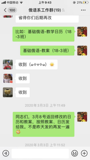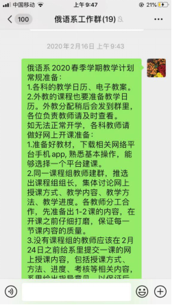 在冯小庆主任的努力下,俄语系第一周网课顺利结束。尽管过程遇到困难和新挑战的,但获得了全系学生的认可,全系教师最大限度地发挥自己的优势,也从多方面提升能力。