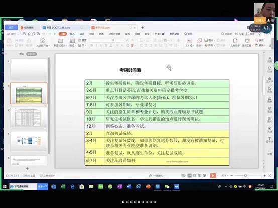 为了进一步提高艺术学院2021届毕业生的升学率,艺术学院2021届毕业生考研促进交流视频会于2020年4月4日上午10:30在腾讯会议举行。本次促进交流会由戴子博老师主持,艺术学院2021届有考研意向的31名同学参加。由于国内外疫情影响,企业招聘职位数量出现断崖式下降,直接影响着2020届毕业生的就业。然而新出台的“延缓就业时间”的保就业措施使得2020届毕业生就业和2021届重叠,压茬进行,出现双重竞争。面对2021年的考研严峻形势,提早做好备考准备是当下关键所在。
