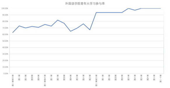 创新方法,青年大学习参与率100%。自青年大学习开展以来,哈尔滨理工大学外国语学院学生工作部高度重视,学院成立副书记、团委书记、全体辅导员、团支部书记四级联动机制,纵向传达,横向督查,分层推进,分类考察,重视发挥团学干部的能动性和示范性,形成良好的学习氛围和学习意识,自活动开始全院学生参与率始终排序全校前三名。从第六季开始,连续9期名列全校第一,参与率达到100%。