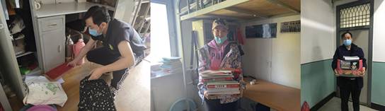 面对学生焦急期盼的心情,各学院学生工作人员耐心梳理统计学生的需求,查找整理学生的急需物品清单、家庭地址、联系方式等信息,按照疫情防控要求,在公寓管理员的协助下,进入学生宿舍帮助学生查找、打包、核对、邮寄急需物品。学生工作人员克服了学生宿舍分散、物品繁杂、物品存放位置不确定等困难,通过电话、视频连线等方式现场询问确认,为学生送上细心的服务和贴心的守护。各学院副书记和辅导员已经帮助学生邮递电脑、电子书等贵重物品和学习资料、衣服鞋子等生活用品数百余件。学生和家长通过QQ和微信等向学校和辅导员表示感谢,纷纷表示坚决支持学校工作,共克时艰。