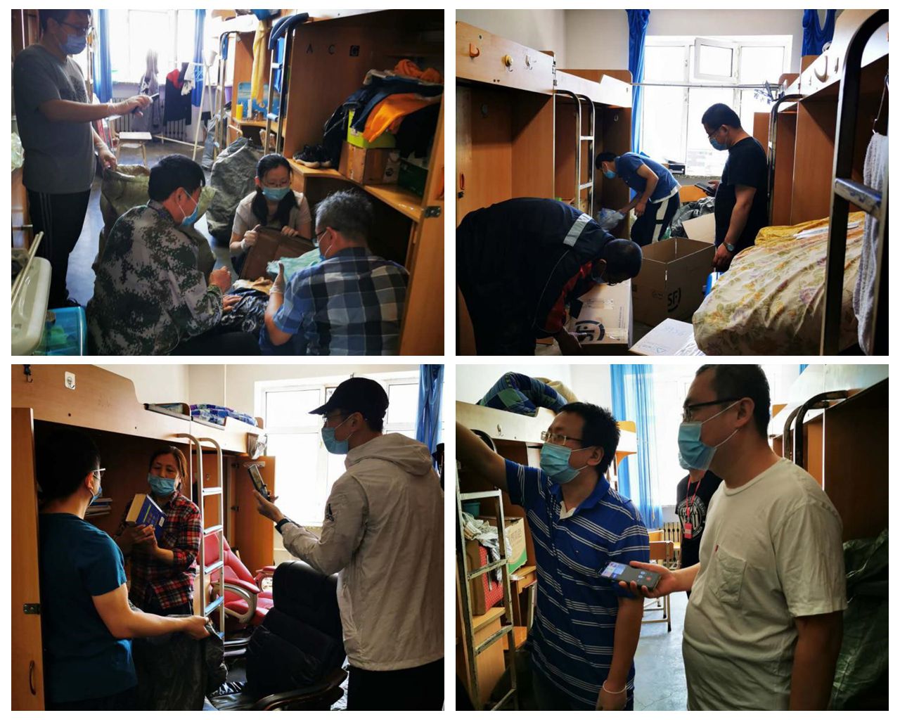 6月15日起,我院开始正式启动毕业生行李物品邮寄工作。在整理行李物品过程中,为了避免遗漏,教师志愿者们与学生通过视频连线的方式全程直播。大到被子、衣服,小到课本、袜子,从书架上的书籍到床下的鞋袜,从床上到床下,从门口到阳台,不落下每个角落,老师们都耐心归类,整理后装箱装袋。“孩子,我现在要整理你书架上的物品了,请确认一下”、“放心吧,老师一定帮你把贵重物品单独邮寄”…….一句句暖心的话语、不厌其烦的沟通,真正做到了一对一服务,确保物品整理的准确无误。随后,进行打包邮寄工作,打包邮寄过程中教师也全程与同学们进行视频连线,反复核对学生姓名、联系方式和邮寄地址,保证每个学生信息准确无误,确保毕业生们能顺利收到自己的行李物品。各个环节分工有序、紧密配合,高效地完成行李邮寄送工作。
