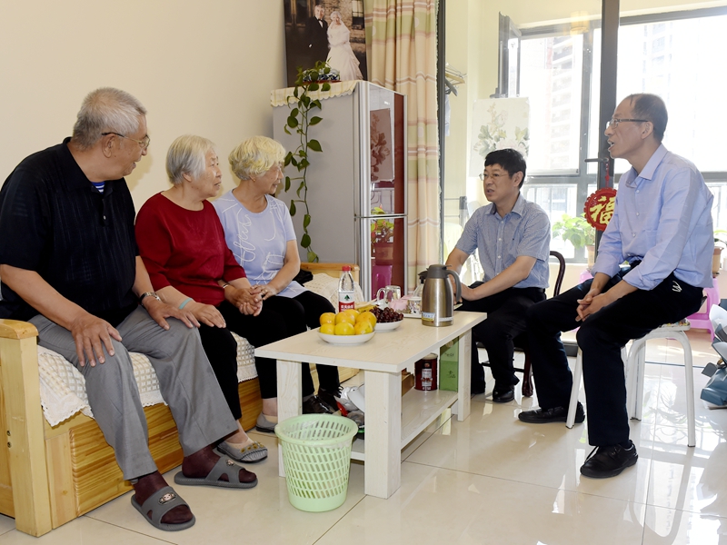 2020年9月6日下午,党委常委、宣传部部长周长群、电气与电子工程学院党委书记张军等一行,到韩淑芝家中看望、慰问韩淑芝、尚桂英等2位八旬老校友。