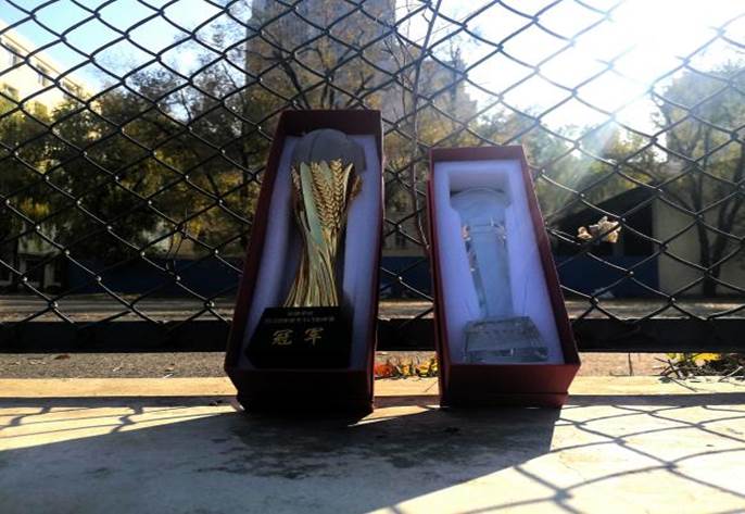 测通学院学生会指导教师张德龙为冠军球队测控20-3班颁发奖杯