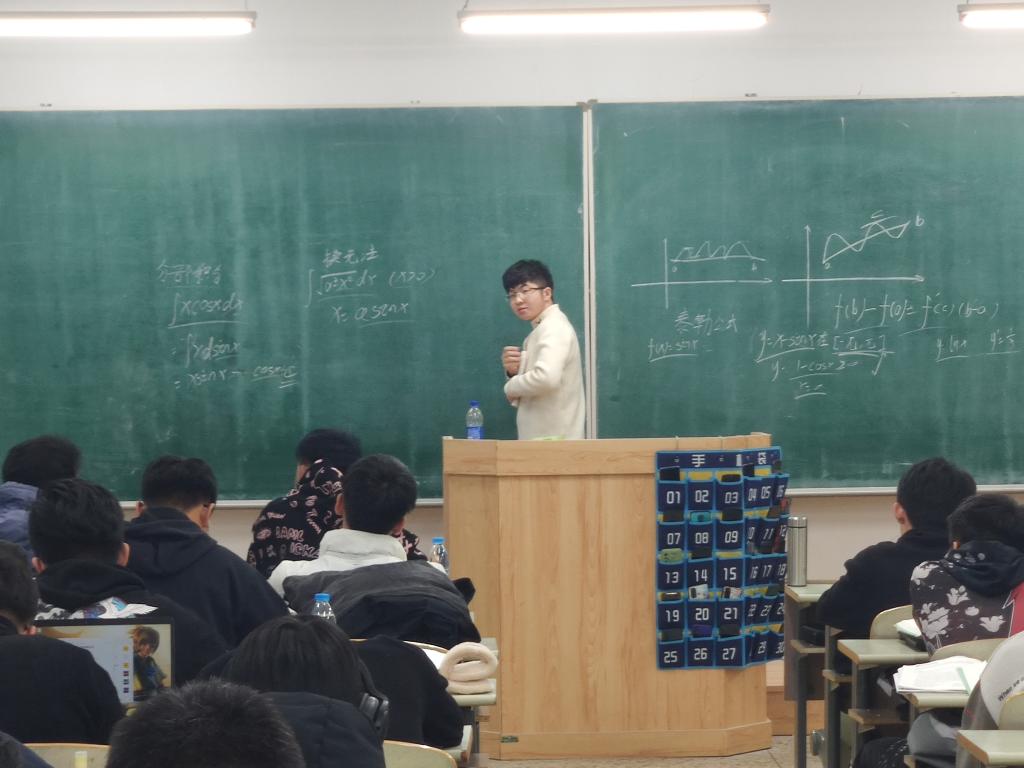 其中,宫润泽同学首先概括了高数上册的基础知识,并通过讲解例题的方式来介绍解题方法,他为同学们梳理了高数期末考试值得注意的关键点,尤其对泰勒公式和定积分这两部分知识进行了详细的介绍。其他的朋辈教师也分别在各自的班级中进行了讲课。