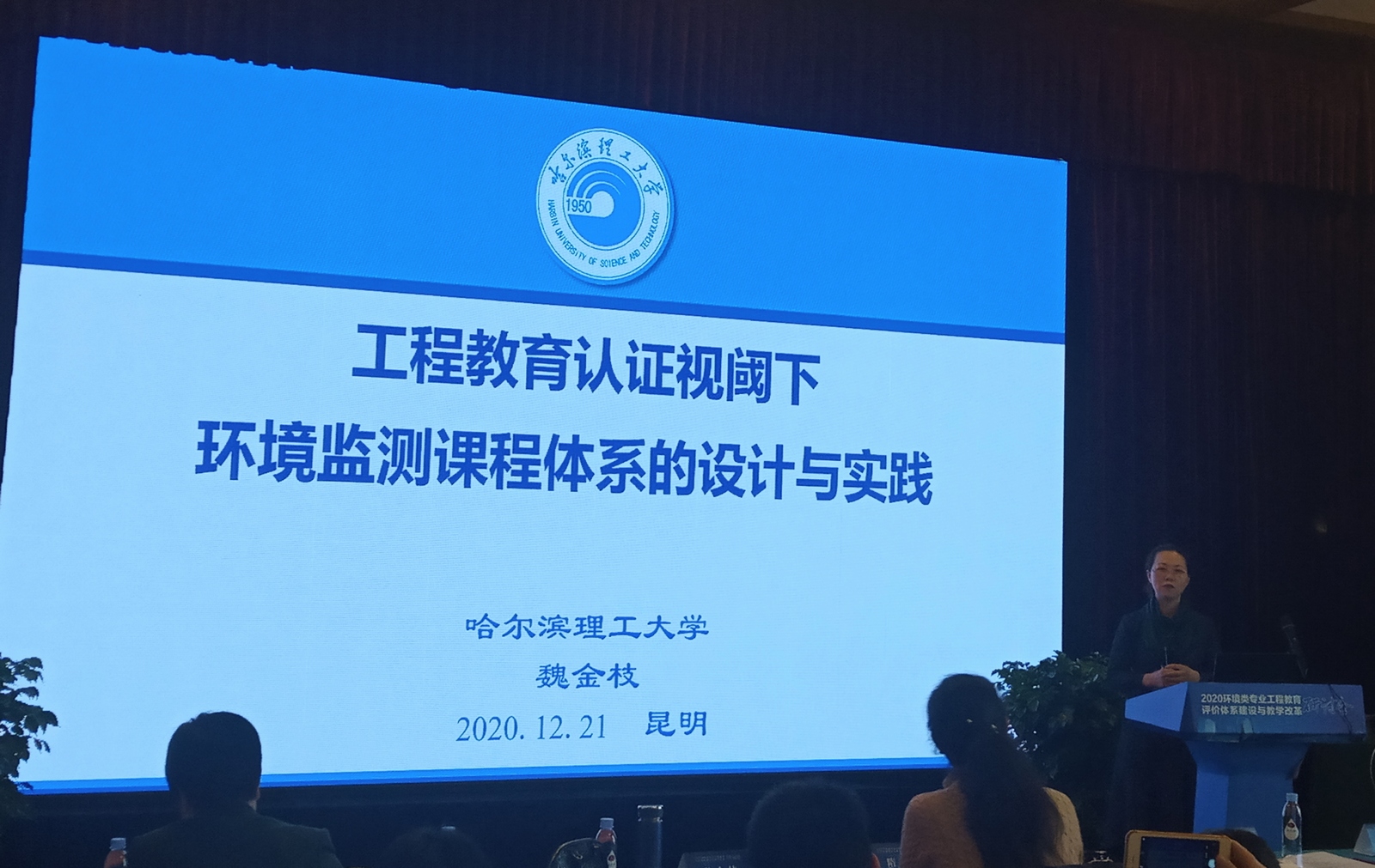 环境工程专业从2016年着手进行工程教育认证工作,在工程教育认证理念的推动下,为了支撑三个目标(培养目标、毕业要求及课程目标)的达成,专业积极进行三个机制(培养目标达成评价机制、毕业要求达成评价机制及课程目标达成评价机制)的持续改进,并在2019年通过工程教育认证。本次大会上魏金枝教授以《工程教育认证视阈下环境监测课程体系的设计与实践》为题作了分会场报告。报告主要汇报环境监测课程组教师如何将工程认证理念融入到课程体系的设置及教学活动的设计中。根据环境监测课程特点及专业应用型人才培养的定位,为对毕业要求中的工程知识、问题分析、研究、使用现代工具及个人和团队等指标点的达成进行支撑,课程组基于成果导向的理念将课程体系设置为理论课、实验课及科研训练三个环节,基于以学生为中心的理念确定教学目标,对教学活动中教师的教法、学生的学法及效果的评价进行设计,并展示了学生学习过程中取得的成果。报告的内容引起与会者的极大关注,华东理工大学,北京科技大学,太原理工大学,武汉工程大学等十余所学校的教师在报告结束后与魏老师进行了深度交流和讨论。本次参会为环境工程专业进一步提高专业建设水平提供一次学习机会,也为同行了解哈尔滨理工大学环境工程专业提供了一次宣传的机会,扩大了我校知名度,赢得了良好声誉。