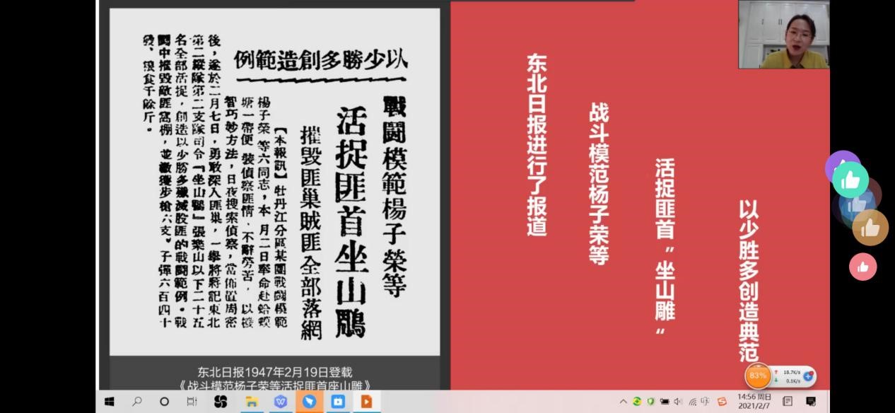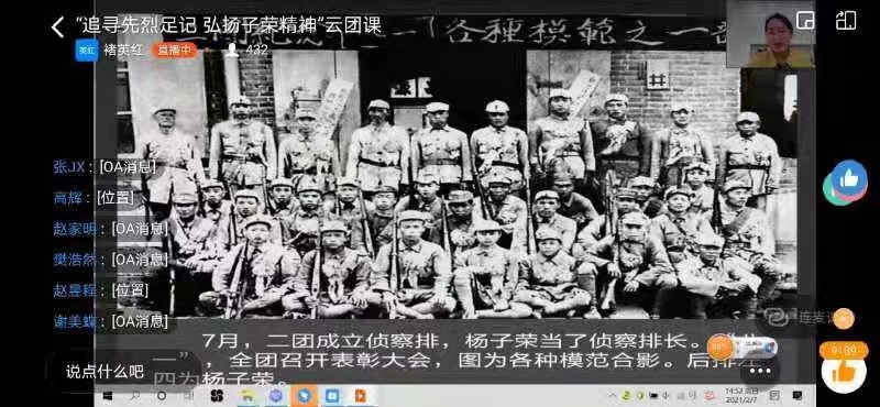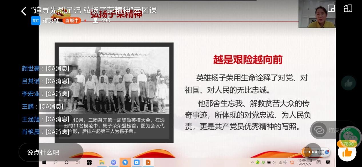2021年2月7日,我院团委围绕学习英雄、崇尚英雄、致敬英雄为主题,为我院学生开展 “追寻先烈足迹 弘扬子荣精神”的云团课直播。