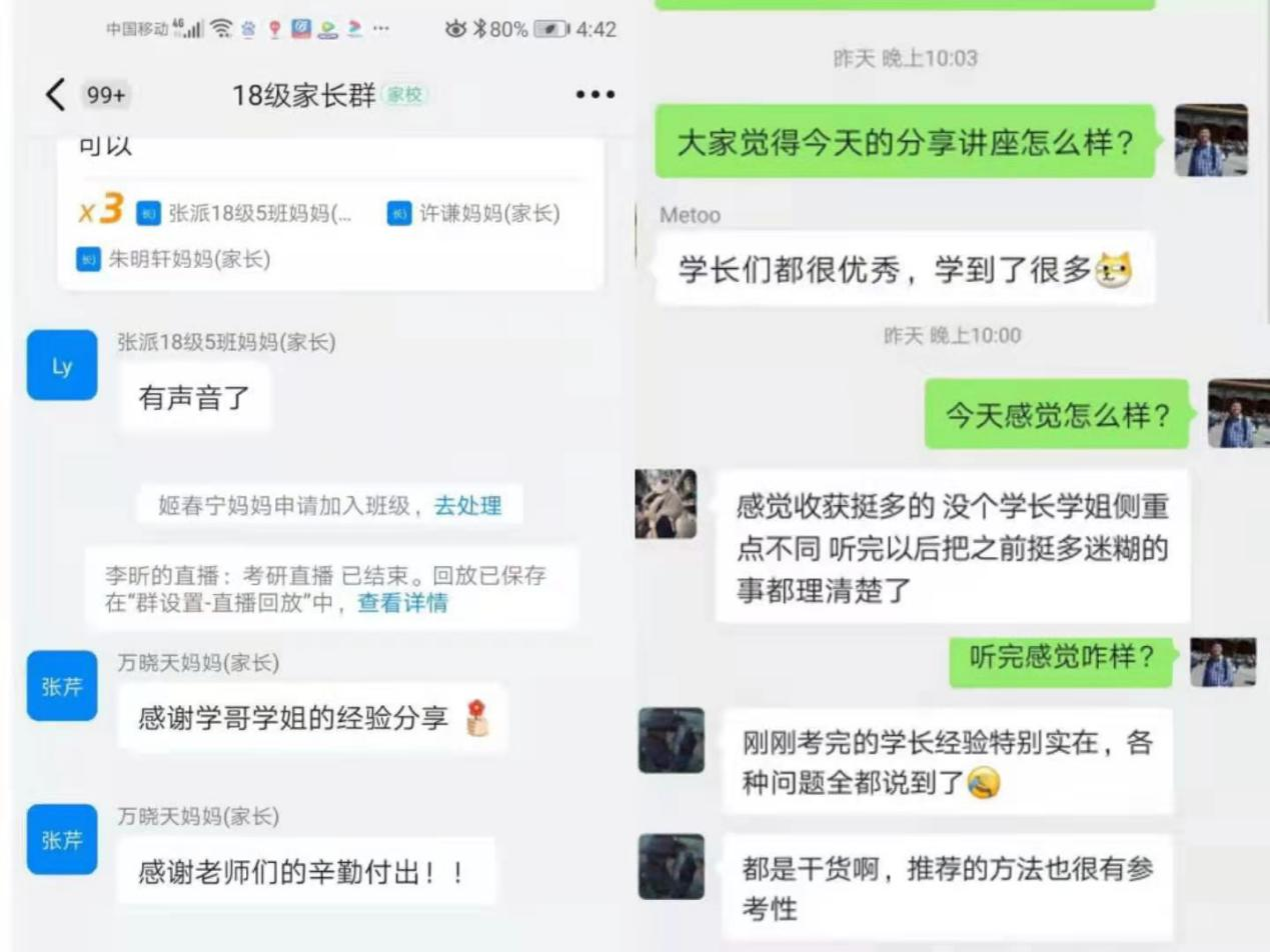 为帮助家长认识学生本阶段及专业发展特点和了解就业、考研的真实情况,在学生培养过程中更好的形成家校合力,学院通过钉钉平台对辅导过程进行了直播。通过特殊形式的“家长会”促进家校沟通,取得了良好效果。