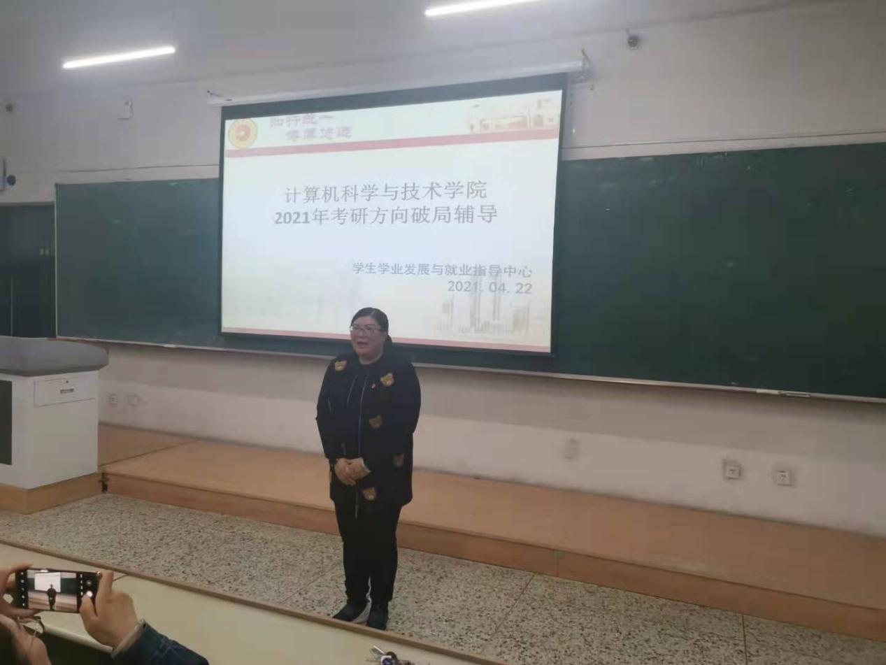 为深入贯彻落实学校党委关于开展党史学习教育的部署和要求,更好地推动党史学习教育走深走实,用实际行动践行学党史、悟思想、办实事、开新局的要求,结合学院党史学习教育实施方案,计算机学院扎实开展“我为群众办实事”实践活动,坚持将学习党史同服务师生相结合,力争在党史学习教育过程中真正用心用情用力做到解难题、办实事、做好事。4月22日晚18:00,计算机学院在新主楼A514教室,开展了“我为师生办实事”系列活动——“举办‘破局’系列学生发展指导”,围绕大三学生关心关注的考研、实习、就业等发展方向问题,结合在备考、实习生招聘、准备就业等方面存在的困惑,进一步增强了同学们对研究生入学考试的认知,明确同学们的考研目标。学院孙广路副院长、刘坤雁副书记,2018级辅导员王冰、学院学生学业发展与就业指导中心主任刘鸿图,哈尔滨安天科技有限公司HR孙慧頔女士、8位2017级考研学生开展了专题指导。600余名学院学生参加了各类指导活动,2018级学生家长通过钉钉平台同步收看了活动直播。