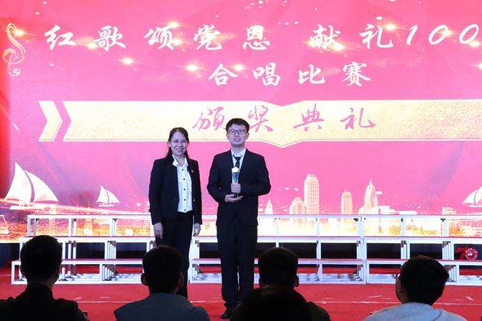 本次比赛中,学院老师和各班班助也组成了一支朝气蓬勃的队伍,一首《我们走在大路上》将会场的气氛推至高潮,为党的100周年献上礼赞,其中李芳明老师也带来了一首《党旗更鲜艳》,迎来了全场热烈的掌声。这些歌曲讴歌了中国共产党“只为日月清明,阳光灿烂;只为乾坤朗朗,国泰民安”,坚持以为人民谋福利为根本目标的高尚情操,树立了当代大学生奋勇向前,努力提升自身价值的时代精神。老师们的合唱寄托了对同学们的激励之情,使同学们感受到了革命精神的历史意义,涤荡尘霾,对以后的人生道路不再迷茫。