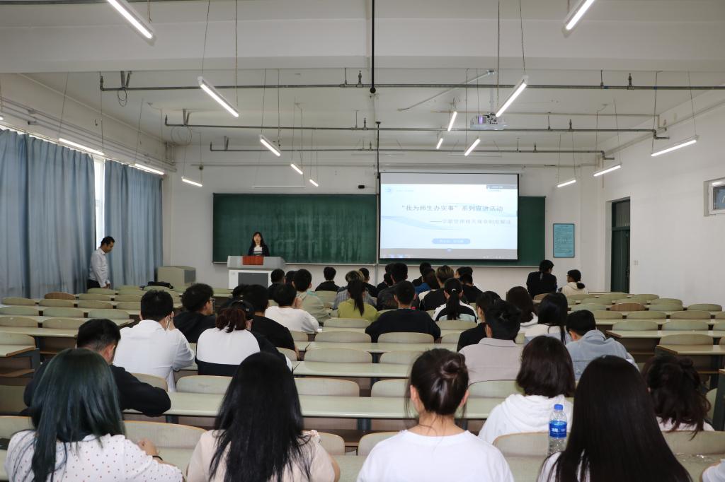 2021年5月13日,在新主楼F501教室,由教务处学籍科邹芸潞老师针对学籍管理相关规定进行了解读,讲座同步在腾讯会议和智慧课堂进行直播。
