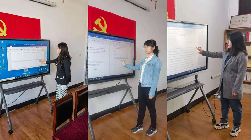 单鹂娜书记 、边旭老师、于乐老师在进行党史接力诵读
