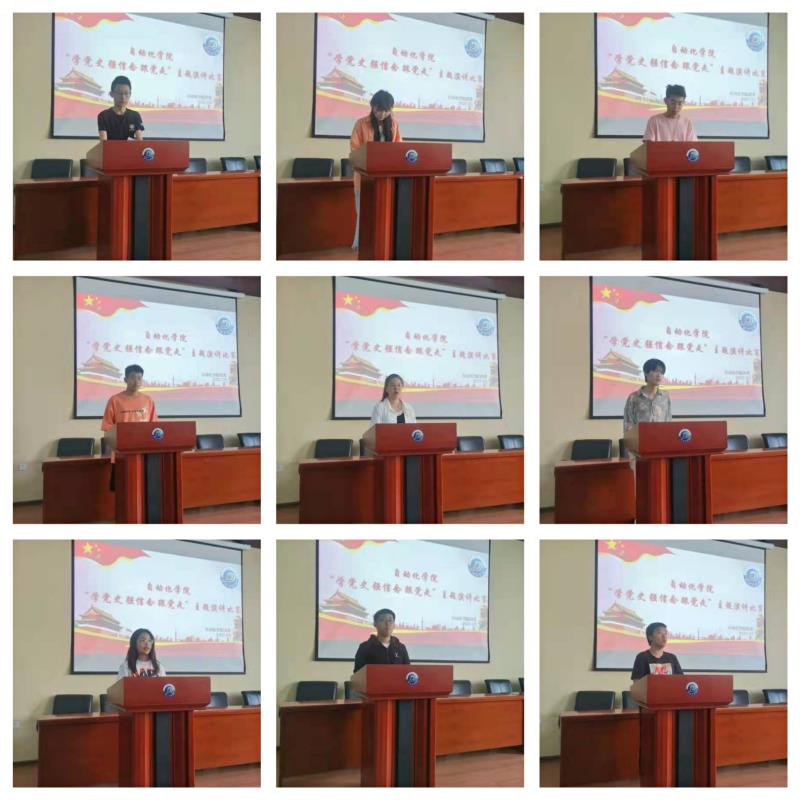 倾听党史百年风雨历程,传播奋进向上青年之声。为迎接中国共产党百年华诞,深入推进“学党史、强信念、跟党走”主题学习教育,自动化学院于2021年5月20日在新主楼E1404举办“学党史、强信念、跟党走”主题学习教育演讲比赛。自动化学院团委书记黄林萱、自动化学院学生会指导老师付宇、自动化学院辅导员张戈、以及自动化学院团学组织学生干部作为评委出席此次演讲比赛。