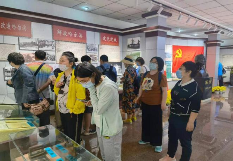 “中共北满分局旧址”展览馆室内保存有陈云同志当年从事革命活动的照片、资料及用过的办公桌、壁炉等一大批珍贵革命历史文物。在展览馆里,教师们凝神驻足,仔细观看一张张图片、一件件文物,一篇篇介绍,再一次心灵涤荡,深深触动了爱国之心,家国情怀。各党支部纷纷在展览馆门前合影留念。