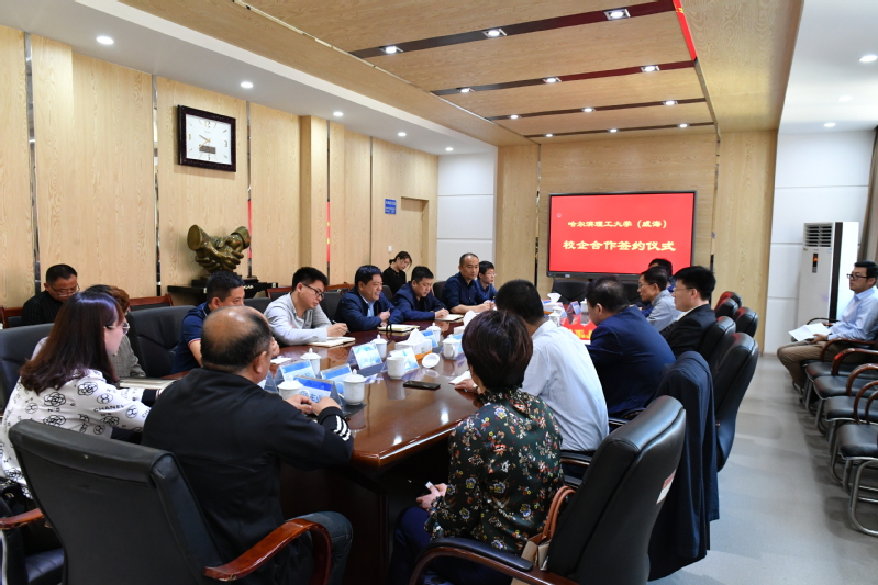 学院党委书记张立双代表荣成学院对各位领导以及企业家的到来表示热烈欢迎,同时也向自建校以来对荣成学院给予大力支持的市委市政府以及地方各有关单位表示衷心的感谢。他说,随着“四方协议”的签署,为荣成学院提供了良好的发展契机,荣成学院即将进入新的发展阶段,下一步学院将规范内部管理水平、提升办学教学质量,共享校区资源,不断加强与地方全方位合作,并围绕“两海一服”发展战略,结合荣成地方需求,制定荣成学院特色人才培养方案,通过教育培训进一步增强服务意识,进一步提升服务能力、进一步拓展服务渠道、进一步丰富服务内容,将内涵提升与服务地方相结合。接下来将依托哈尔滨理工大学威海研究院进一步加大校企合作力度,加强与企业沟通,开拓实习实践基地,把实习做到企业去,让企业成为我们的“实验室”,为建设宜居、宜业、宜学的美好荣成贡献理工力量。