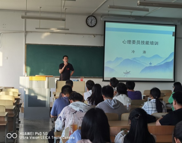 5月25日晚6时,学工办在3教403举办朋辈心理辅导技能培训,由心理健康协会指导老师冷涛主讲,心理健康协会骨干成员、有兴趣参与朋辈心理辅导同学参加培训。
