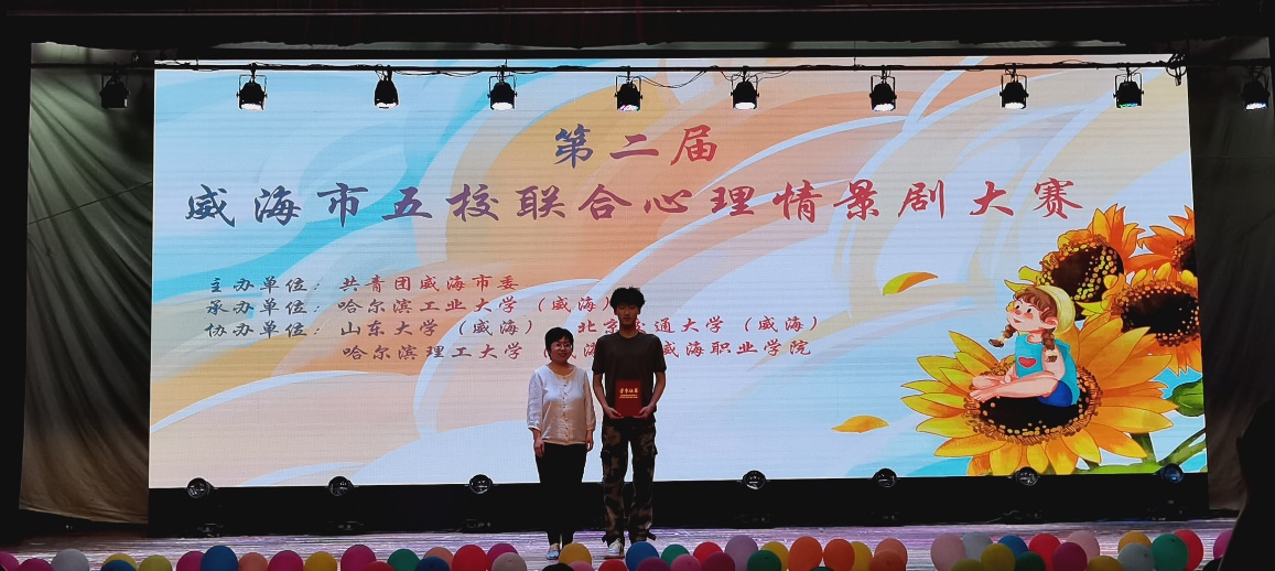 经过紧张激烈的角逐,在本次威海市高校联合大学生校园心理情景剧大赛总决赛中,我院经济管理系的参赛剧目《“疫”外的幸福》荣获三等奖,电气工程系的参赛剧目《清澈的爱,只为中国》荣获优秀奖、最佳剧本奖。电气工程系20-5班赵英喆同学获得最佳男演员奖。(摄影:李显民)