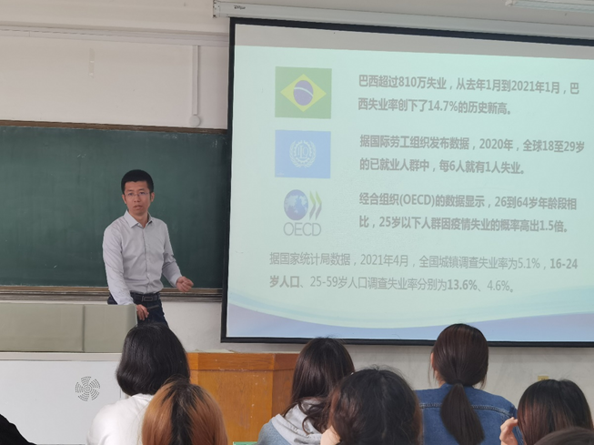 王卫副教授以《劳动经济学》中“失业”一章作为观摩课程内容。根据课程特点和讲授内容对课堂教学进行了精心设计,认真讲授,展现出了人力资源教研室教师扎实的教学功底;以问题为引领,产出为导向,充分展示了以学生为中心的教育教学理念。讲授过程中,以精美PPT课件为教学手段,充分融入思政元素,优化学生体验,提高了课堂效率,增强了学生参与度,达到了预期教学效果。