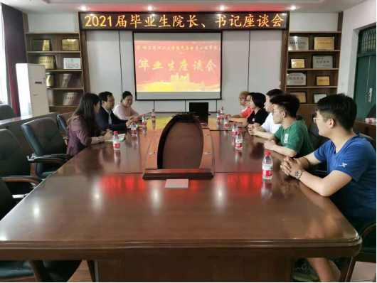 2021年6月17日下午14:00,电气与电子工程学院2021届毕业生座谈会在新主楼G1014举行,学院院长刘骥、党委书记单鹂娜、党委副书记兼副院长张颖、毕业生辅导员刘书齐老师以及6名毕业生代表参加了本次毕业生院长、书记座谈会。座谈会由辅导员刘书齐老师主持。