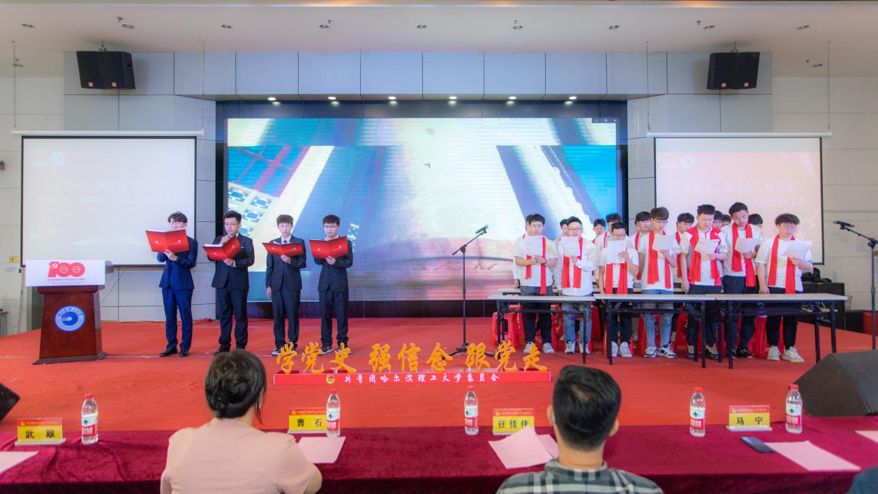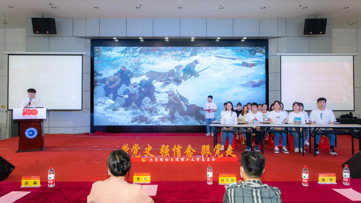为隆重庆祝中国共产党成立100周年,贯彻习近平总书记在党史学习教育动员大会上的重要讲话精神,落实团中央《共青团中央关于在全团开展“学党史、强信念、跟党走”学习教育的通知》要求,教育引导广大团员青年学史明理、学史增信、学史崇德、学史力行,厚植爱党、爱国、爱社会主义情怀,哈尔滨理工大学2021年“学党史、强信念、跟党走”精品主题团日展演活动于6月19日下午15时在我校一号楼0220报告厅拉开帷幕。校团委副书记曹石、学生工作部副部长兼团委副书记任佳伟、各学院团委书记以及200余位2019级、2020级各班级团支书参加本次活动。