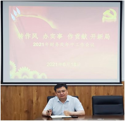 6月18日14时,财务处在教学主楼E304室召开以“转作风、办实事、作贡献、开新局”为主题的年中工作会议,会议由财务处处长曹乐松主持,财务处全体工作人员参加会议。