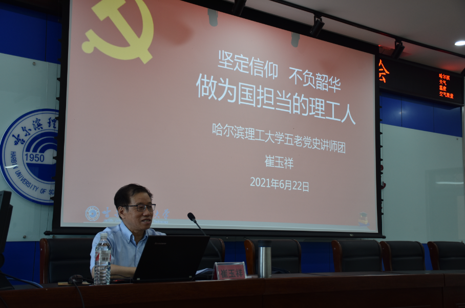 本次宣讲会邀请哈尔滨理工大学党史学习教育“五老”党史宣讲团成员崔玉祥老师做《坚定信仰 不负韶华 做为国担当的理工人》专题宣讲。崔老师从:和同学们说说心里话-代际沟通、传承红色基因-继往开来、继承大珩精神-为国担当等三个方面为毕业生党员上了一堂精彩的党史教育课,崔老师的报告内容丰富,视野开阔,立意新颖。特别是为毕业生党员深刻阐释了“忠诚祖国、献身科学、淡泊名利、寻优勇进”的大珩精神和老校长“教研并举,理工结合;多科互用,形成特色;卓育人才,亦能亦德;应迎世纪,面向祖国”的教育思想,让与会人员进一步强化了对大珩精神和老校长教育思想的理解和掌握。