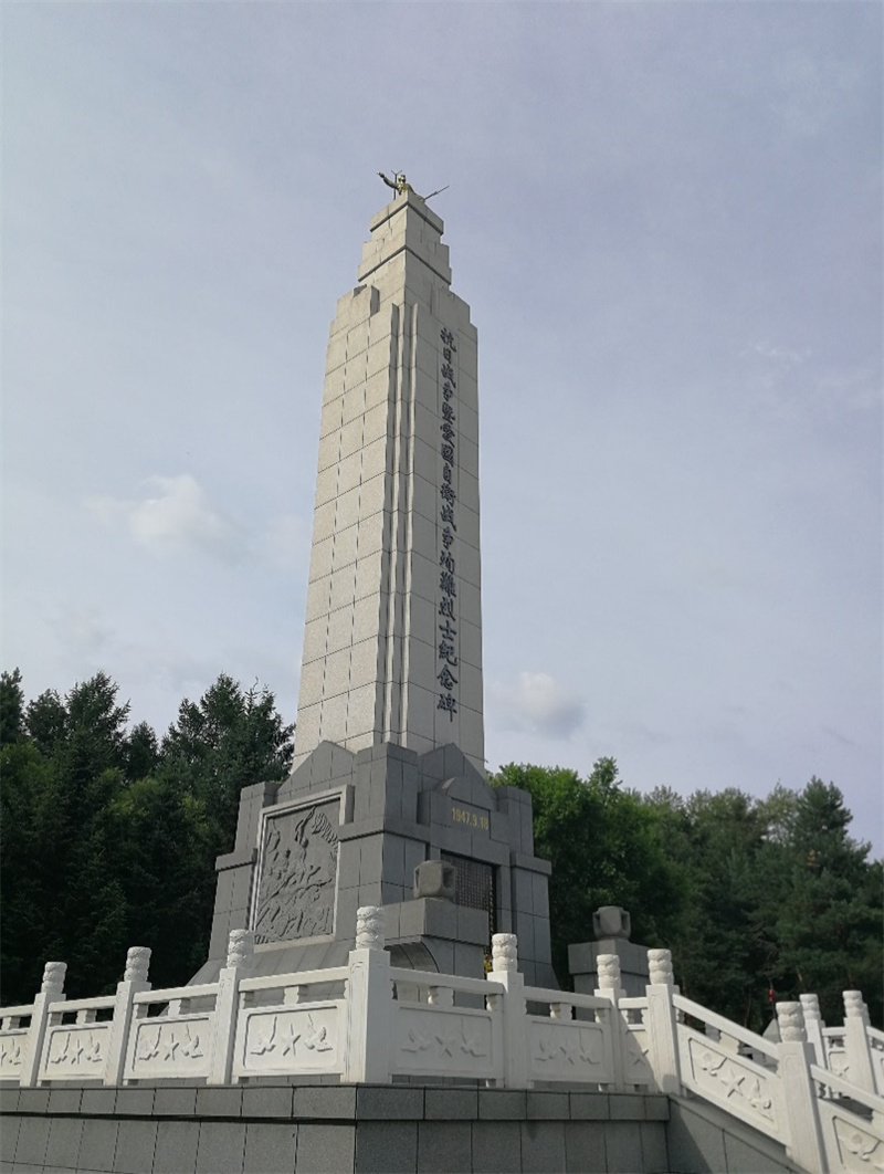 在牡丹江市北山脚下,矗立着一座庄严肃穆的烈士纪念碑,为了纪念在抗日战争及解放战争中英勇献身的烈士。7月3日下午,实践团成员在抗日战争暨爱国自卫战争殉葬烈士纪念碑前进行了祭奠,寄托哀思。纪念碑再现了广大人民群众和人民战士在抗日战争和解放战争中表现出的那种不屈不挠,为国英勇捐躯的崇高思想境界,让我们永远铭记为民族独立、人民解放和社会主义建设事业矢志奋斗、英勇牺牲的烈士们,继承遗志,弘扬伟大革命精神,为实现中华民族的伟大复兴贡献青春力量。