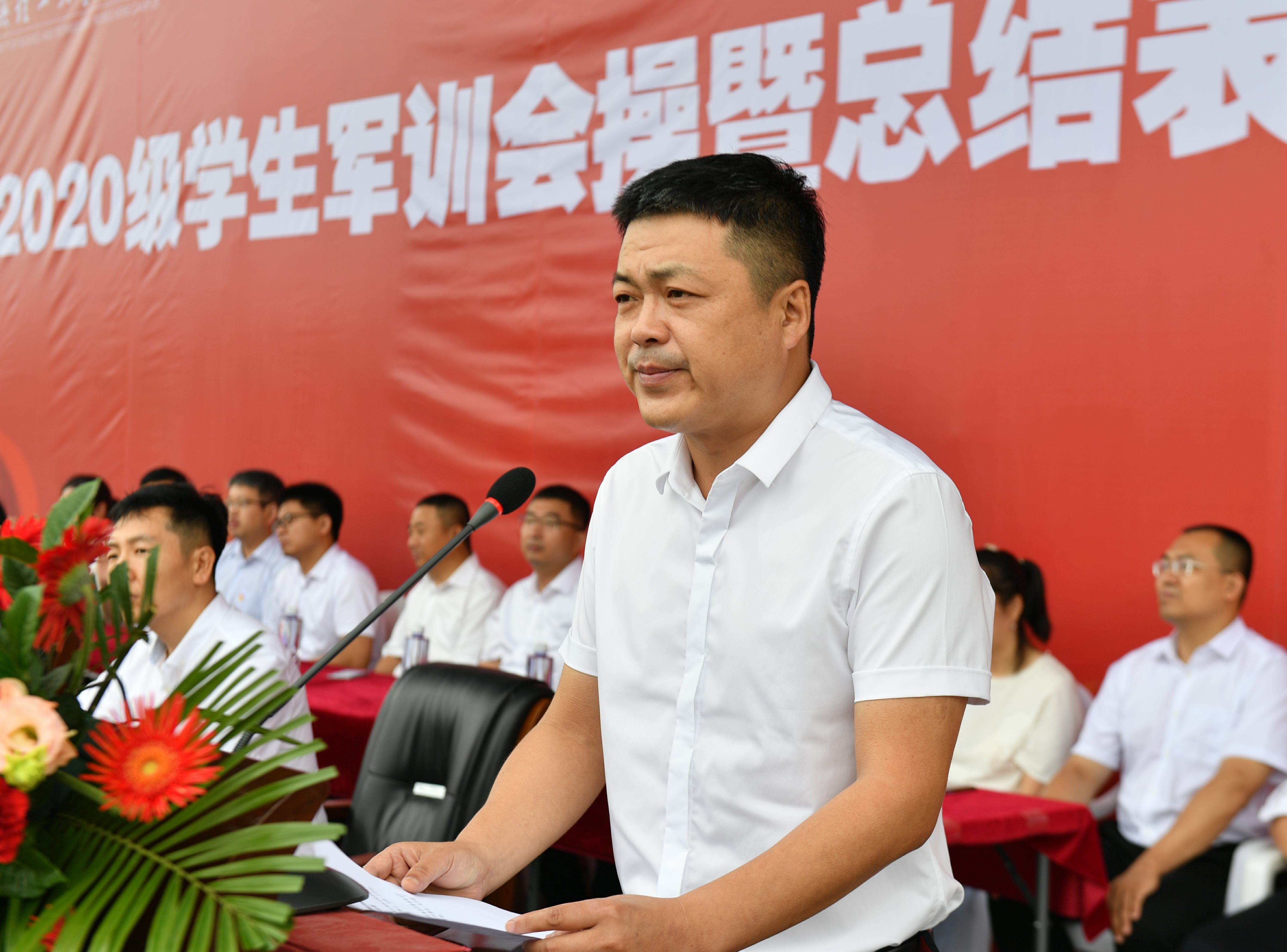 荣成学院党委书记张立双代表学院向前来出席检阅的部队领导、承训教官表示感谢,向圆满完成军训任务的1640名2020级学生表示祝贺。随后,张立双书记为2020级学生讲授了一节生动精彩的国防教育课。授课过程中,张立双书记与现场学生时时互动,课堂气氛热烈。张立双书记介绍了高校国防教育的由来和组成部分,阐述了国防意识和国防自信的重要性。高校国防教育是学校国防教育的重点,高校国防教育要始终站在国防法、兵役法、国防教育法的法律高度,始终站在为国家和国防建设培养高素质人才的战略高度。学院一直以来非常重视学生军事训练工作,目的是为实现“一二三四”的教育目的:“一”是培养学生一种精神——爱国的精神;“二”是培养学生两种观念——组织纪律观念,人生价值观念;“三”是三种意识——国防意识、国家安全意识、责任使命意识;“四”是四种素质——思想道德素质、科学文化素质、基本军事素质、身体心理素质。习近平总书记在庆祝中国共产党成立100周年大会的重要讲话中勉励年轻人要有志气、有骨气、有底气。作为新时代年轻人要有远大的理想,坚定的信念,坚持不懈去奋斗。张立双书记勉励同学们珍惜大学生活,要加强修养、修思想修品行,也要刻苦学习、学知识学本领,努力使自己成为德才兼备、全面发展的高素质人才。只有青年学子锻炼成长成才成器,将来才能够为国家、为民族多做贡献,也只有这样,才真正做到无愧于伟大的党,无愧于伟大的国家,无愧于伟大的人民,无愧于伟大的民族,无愧于伟大的时代!