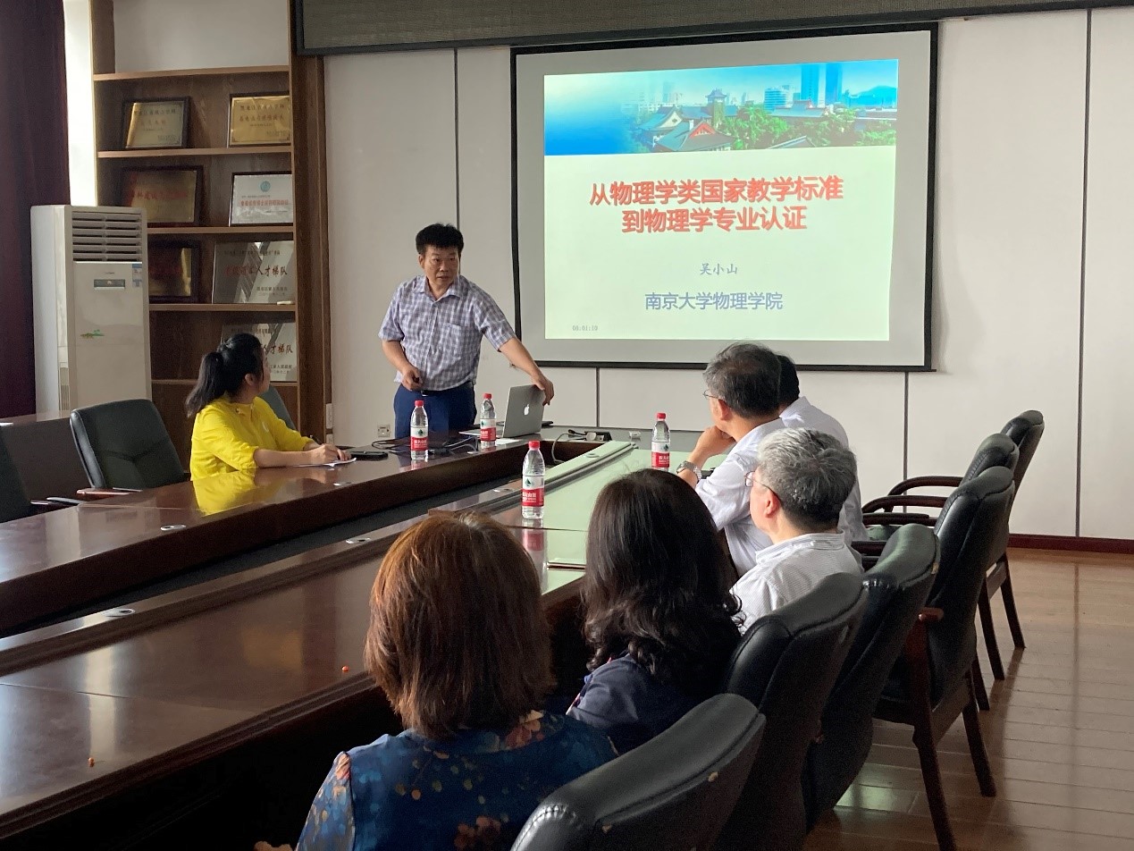 为推进我校理学院应用物理学专业的发展,7月9日上午,南京大学吴小山教授应邀来我校作《从物理学类国家教学标准到物理学专业认证》专题讲座,校长助理章东教授、教务处处长王义文教授、理学院院长宋清昆教授、副院长张辉教授以及理学院物理系骨干教师参加了讲座,讲座由张辉院长主持。
