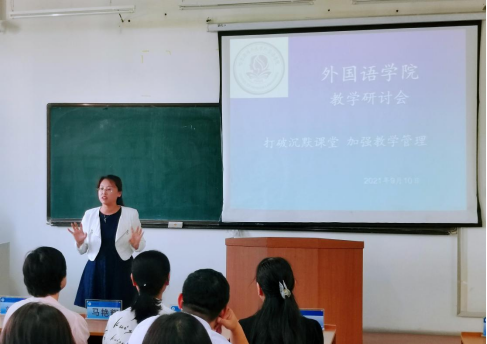 为庆祝第37个教师节,喜迎校第四次党代会的召开,外国语学院教学研讨会于9月10日13:30在南区1-534召开。本期的研讨主题为打破沉默课堂、加强教学管理。教务处副处长刘强莅临指导,学院党委书记顾大兴、院长马艳辉、副院长杨蕊,各系部负责人及50余名骨干教师参加了研讨会,研讨会由副院长王书蕊主持。喀什大学、黑龙江大学、哈尔滨师范大学等高校的专家同仁线上参会,拉开了我校外国语学院与西部高校及省内兄弟院校合作的虚拟教研室活动序幕,