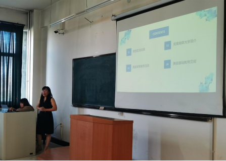 李雪,大外一部副教授,在2018年5月成功申请到国家留学基金委访问学者项目,在2018年9月至2019年9月期间完成了在美国南卡罗来纳州克莱姆森大学为期一年的访学任务。李雪老师重点介绍了美国高等教育见闻,从教学氛围,科研氛围,学习氛围和师生评价体系四个方面,具体讲述了美国高等教育中的值得借鉴和学习的内容。