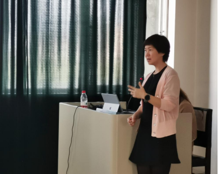 研讨会分为两部分:日语系副主任刘丽丽老师以视听说课为例,介绍了打破沉默课堂的相关教学经验;大外一部李雪老师交流出国访学经历。