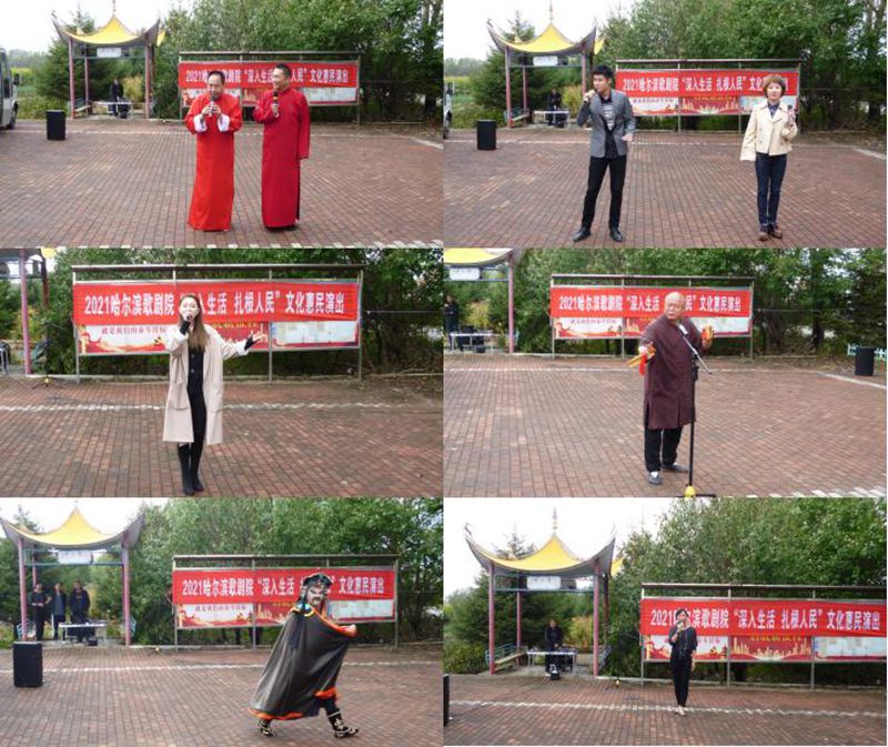 活动现场,哈尔滨歌剧院演职人员用饱满热情的精神面貌表演了歌曲《中国脊梁》《少年》《酒醉的蝴蝶》《自选》《风吹麦浪》《不得了》《父亲的草原母亲的河》《最美的太阳》、川剧《变脸》、相声《智力测验》、快板《建党百年颂》、戏曲《梨花颂》、魔术《魔幻炫彩》等老百姓喜闻乐见的节目,演出活动在一首《没有共产党就没有新中国》的壮丽歌声中结束。