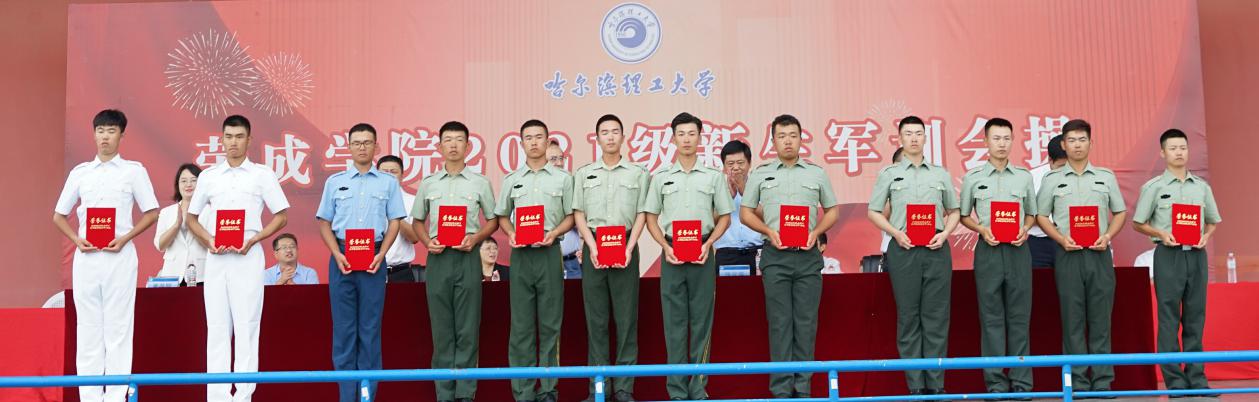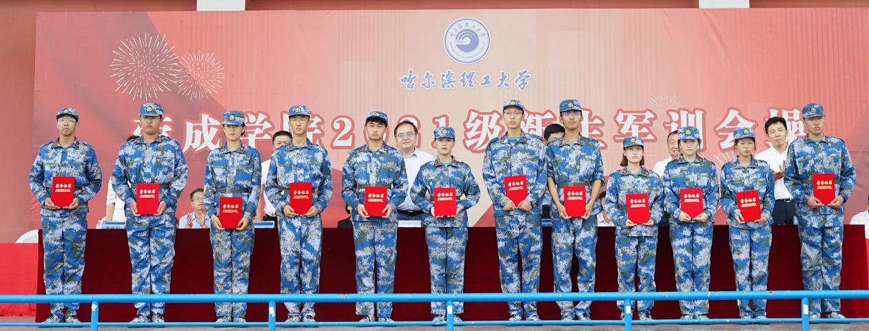 表彰大会上,学院常务副院长杜野宣读了2021级新生军事训练优秀连队和优秀教官名单。副院长董晶颢宣读了学生军事训练标兵和优秀学员名单。随后,学院领导为获奖连队和个人颁发了奖牌、证书。至此,学院2021级新生军训会操暨表彰大会圆满结束。