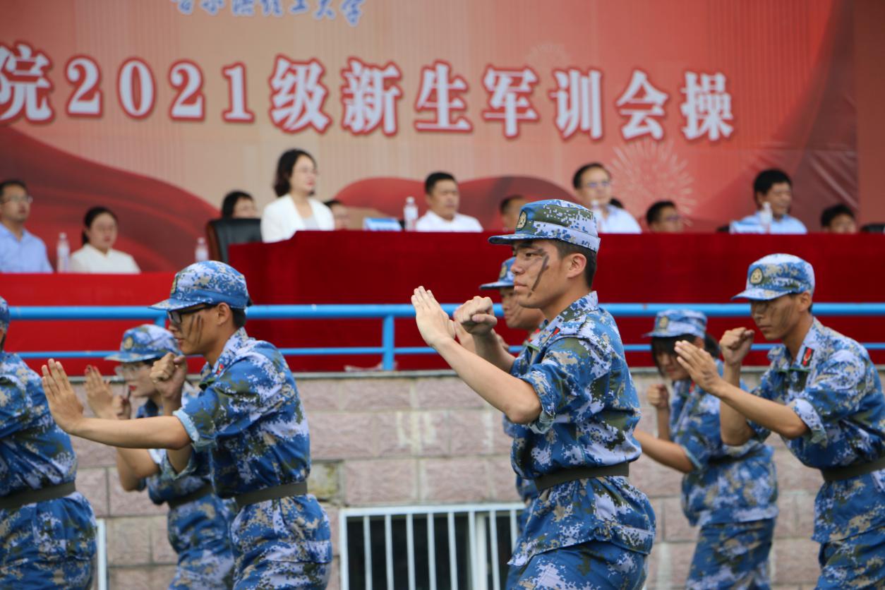 大会首先进行分列式。由22名2021级学生组成的护旗方队踏着整齐的步伐走过主席台,将国旗护送到升旗地点,进行升国旗、奏国歌仪式。迎军旗环节三名国旗护卫队护旗手庄严的将军旗护送到指定位置,全体参会人员肃立向军旗敬礼。随后,总教官下达“会操开始”的口令,20支受检阅方队军容严整、步伐整齐依次走过主席台接受检阅,展现了军训的成果,更展现了哈理工学子能吃苦、肯受累、高标准、严要求的精神风貌。在军体拳、擒敌拳、格斗术、匕首操4支队伍汇报表演中,“男兵”方队豪气冲天,“女兵”方队巾帼不让须眉,每支队伍都精神抖擞、整齐有序,拳脚有力,呐喊震天。