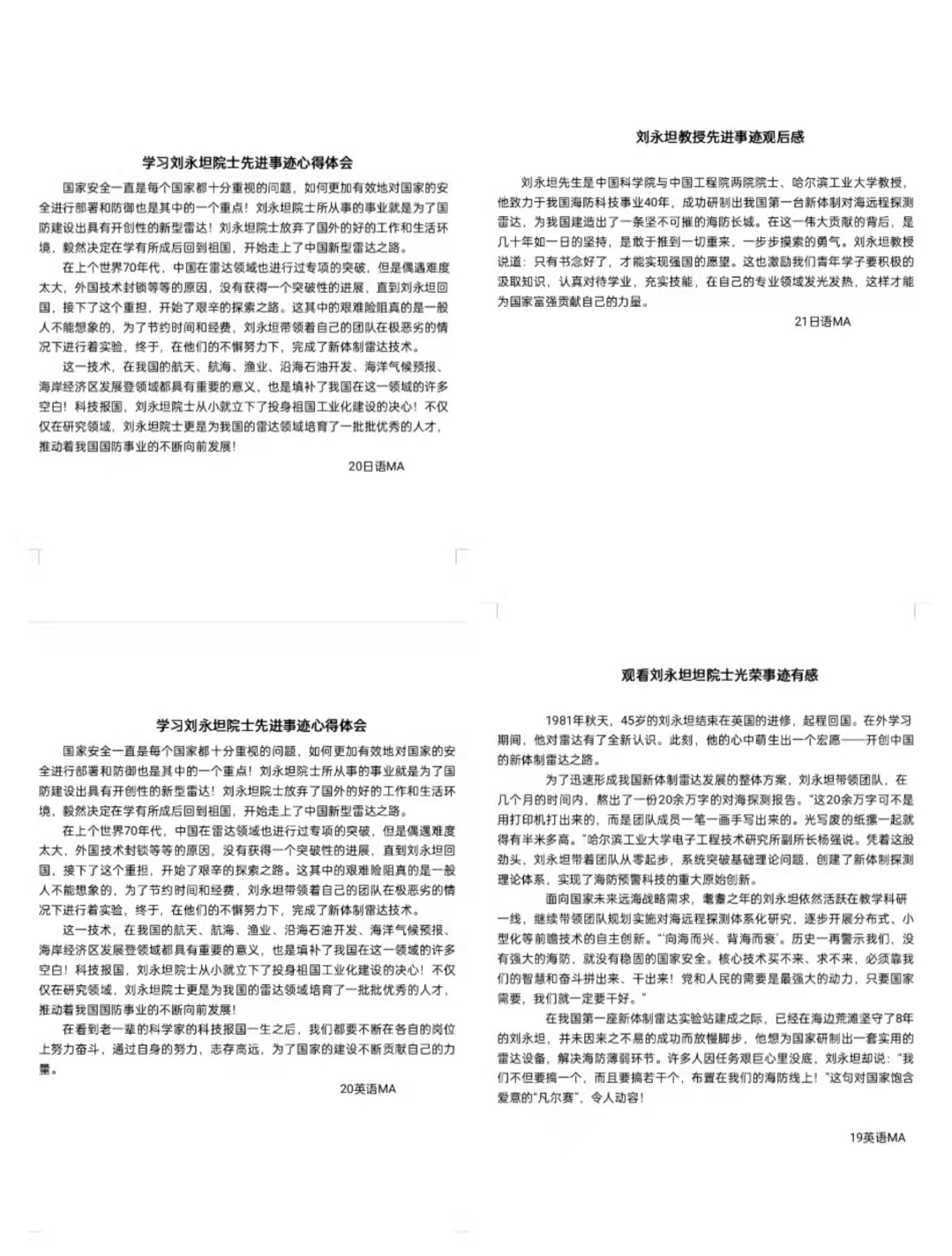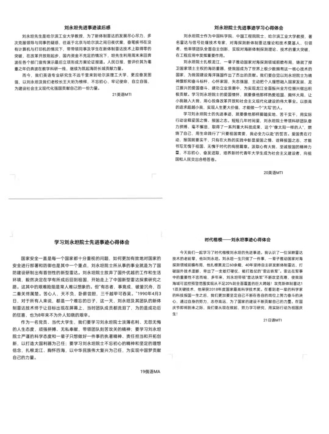 党员教师学习刘永坦院士先进事迹:刘老师不仅在科学研究方面贡献卓越,在教书育人方面也堪称典范,我们要学习坦先生的爱国心,以先生为榜样,通过自己的不懈努力、实现自己的梦想。向刘永坦院士学习,做好自己的本职工作,热爱自己的事业,做时代的追梦人。”