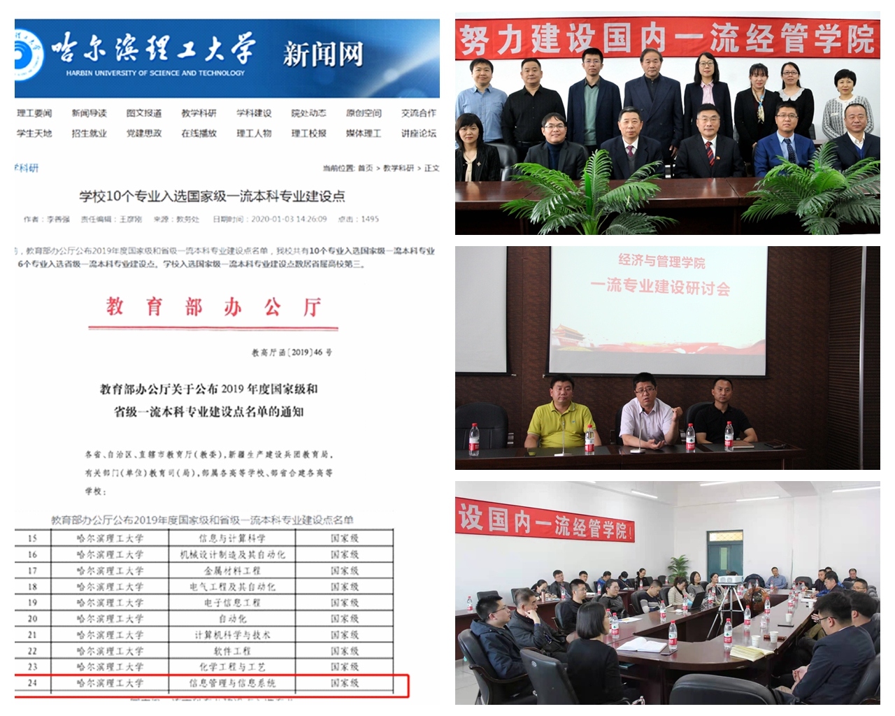 经济与管理学院党委紧紧围绕学校三次党代会提出的“面向国家、区域和行业的战略需求,坚持质量立校、人才强校、特色兴校的战略方针,坚持和树立科学发展、创新发展、开放发展、和谐发展的办学理念,全面深化综合改革,全面推进依法治校,全面加强校风建设,全面提高办学水平”的工作目标要求,坚持以学科建设为龙头,以提升人才培养质量为核心,以高水平教学科研成果和高素质师资队伍建设为支撑,推动学院高质量发展。2017年,“管理科学与工程”和“工商管理”两个学科在教育部第四轮学科水平评估中获评B等级;2018年,“技术经济及管理”二级博士学位授权点升级为“工商管理”一级博士学位授权点;2020年以来,4个本科专业获批国家级一流本科专业建设点。2017年,学院“哈尔滨理工大学高新技术发展与管理研究中心”被黑龙江省总工会授予“工人先锋号”荣誉称号,2018年,学院“高新技术发展与管理研究工作室”被评为“黑龙江省劳模和工匠人才创新工作室”……在强校建设中彰显了经管人的奉献与担当,书写了一曲拼搏奋斗为主旋律的进行曲。