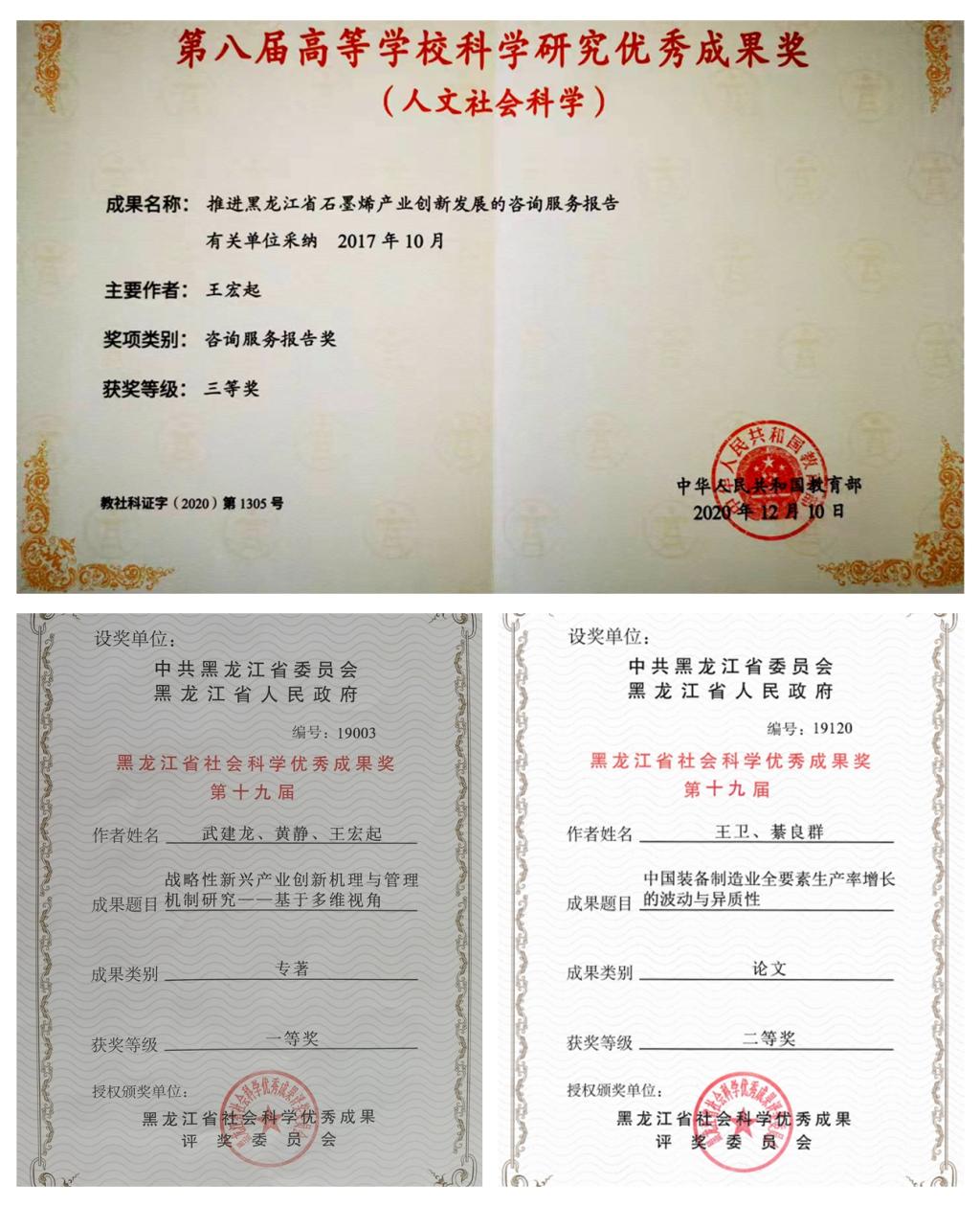 学院坚持以服务地方经济社会发展为使命的旨归,充分发挥学院的学科及专业的优势和特色,引导教师厚植服务现代装备制造业基因,将理论方法研究、人才培养和社会服务融于一体,增进献身教育初心使命的“黑土魂,龙江情”。近年来,学院教师为政府部门、企事业单位等提供规划和咨询服务100余项。“石墨烯产业三年专项行动计划”、“黑龙江省军民融合创新发展三年行动计划”等规划已成为引领全省创新发展的纲领性文件;发布《黑龙江省重点产业(行业)急需紧缺人才目录》、《黑龙江省大学生就业需求蓝皮书》等,服务龙江人才强省战略。多项成果被国家、省、市政府以及大中型企业采纳或应用,为我省实现科技管理工作系统化、规范化和科学化,提高战略新兴产业管理水平发挥了重要的支撑作用。2017年,“高新技术发展与管理研究中心”被授予省“工人先锋号”荣誉称号,2018年,“高新技术发展与管理研究工作室”被评为“黑龙江省劳模和工匠人才创新工作室”。